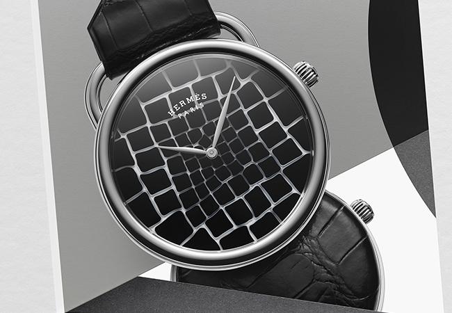 愛馬仕自2010年開始推出Carré H腕錶,一款由Marc Berthier設計的方形腕錶,其極具現代感的風格,經過精心設計以達到一眼即可清晰讀時的特性。如今,該錶款以嶄新的面貌再現: 設計師Marc Berthier將方形錶殼增大數毫米,並善用巧妙的光線效果,在精鋼錶殼上施以拋光及微粒噴砂處理,璣鏤錶盤採用直角排列飾紋,更配備擁有細緻刻面的指針及阿拉伯數字時標。