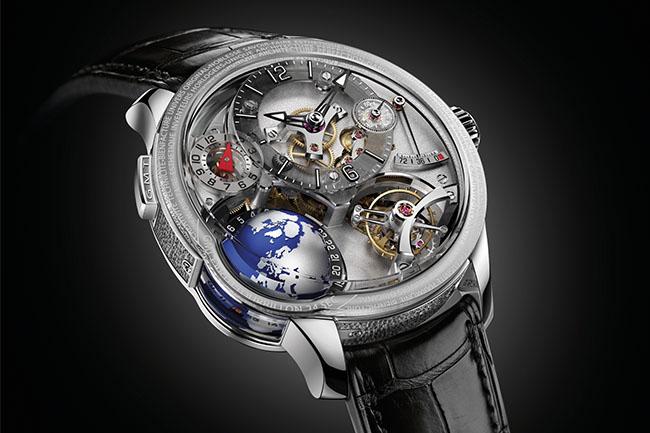 GREUBEL FORSEY向來是獨立製錶品牌中,很致力於研發新技術的發明家!今年推出的新款包括恆定動力腕錶Différentiel d‘Égalité,新技術恆定動力裝置和品牌首次出現的跳秒功能結合,面盤上獨特的開口弧度一眼就可辨識出自GREUBEL FORSEY之手。GMT世界時間也是亮點,經重新設計的錶殼可容納顯示北極到南極的立體地球,品牌經典的24秒陀飛輪也搭於其上,翻到錶背還可以看到24個時區的冬令及夏令時間。