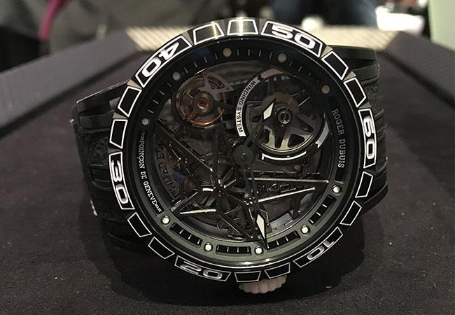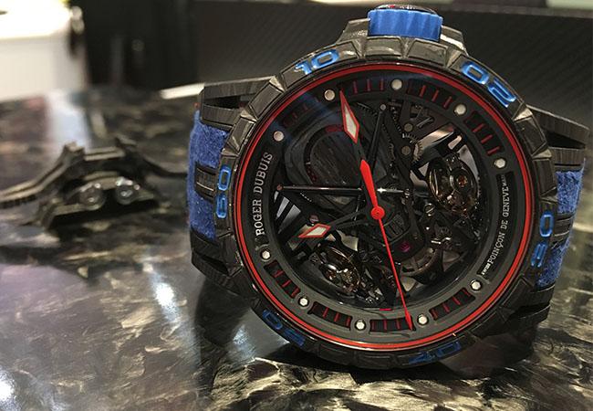 今年的ROGER DUBUIS羅杰杜彼持續和藍寶堅尼、以及倍耐力輪胎合作,同時還是Super Trofeo賽事的主贊助商之一。Excalibur Aventador S腕錶有藍色和玫瑰金版本,藍色款的面盤和錶殼使用藍寶堅尼製車技術的C-SMC(片狀塑模)碳纖維,質地很輕盈。而Excalibur Pirelli Medium White的銷售方式很特別,採期間限定色的形式發售,2018年3月1日~4月30日是白色版的銷售期,期間過後將會停售(不過還沒停售應該就完售了吧),再來的月份會發表Wet Blue藍色版本,基本上就是二個月一個新色的步調,等等看就知道之後有什麼顏色了。