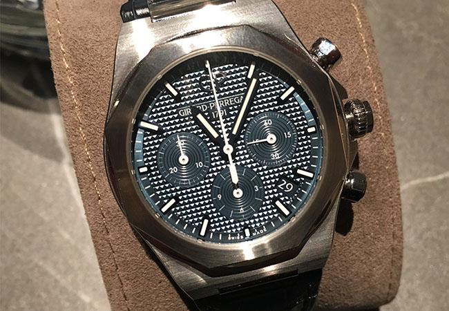 在複雜功能數量不多的一年,芝柏的三軸陀飛輪加三問,更可以說是怪物級的呈現了!厚實的錶殼分為陀飛輪、走時輪系和報時的三層結構,原廠測試覺得鈦金屬材質錶殼的聲音傳導最佳,特別的是連報時的節奏都刻意放慢,讓報時的聲音可以更清楚的被聽見。但目前廠方認為報時聲還不夠完美,正式上市前會再經過調整。 Laureato這個重點系列,除了先前發表過的全陶瓷黑色鏤空腕錶,兩種尺寸、七種新款的計時碼錶也是重頭戲。