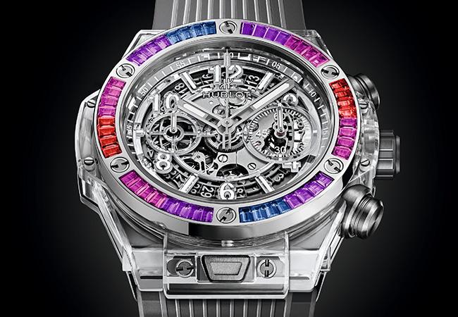 都會優雅,奢華運動風,Hublot 宇舶錶 Big Bang 女性腕錶系列以不同的材質表現女性多重面向,從丹寧牛到有機亞麻,從冷凝黑白色彩到鮮豔普普風,Big Bang 的多樣性毋庸置疑。如今宇舶錶推出三款Big Bang One Click藍寶石腕錶,將藍寶石清澈的魅力透過多彩的顏色,綻放女性純淨優雅的清新魅力。