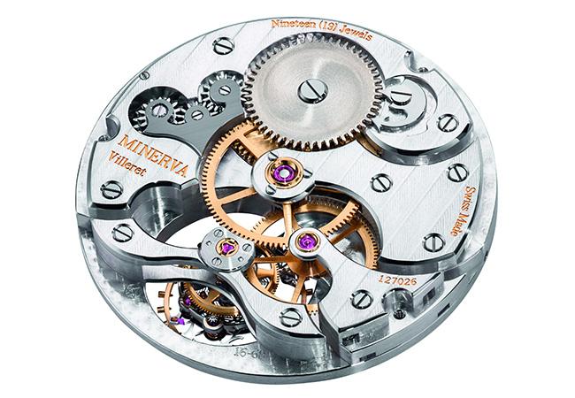 大尺寸平衡擺輪直徑為14.5毫米,振頻為傳統的18,000次/小時。在此過程中肩負至關重要作用的是平衡擺輪上的18枚螺絲,包括2枚可調節螺絲與16枚固定螺絲,不僅再次提升了走時的精準度,更淋漓彰顯傳統高級製錶工藝。遵循純粹高級製錶傳統,此款腕表所搭載的自製機芯MB M16.68完全由位於Villeret的萬寶龍錶廠以手工雕琢打造,飾以精細打磨處理,例如“日內瓦波紋”、倒角打磨、圓形粒紋、斜邊和以Minerva標誌性箭頭裝飾的鏡面拋光棘爪。