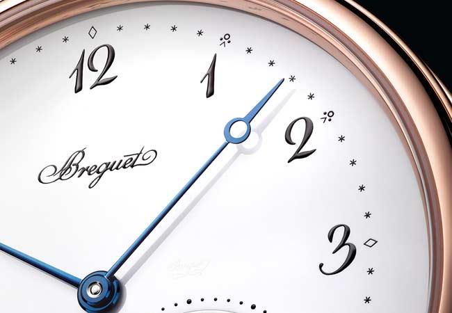 在分鐘刻度的部分還有寶璣的另一項傳統;五分鐘刻度為法式鳶尾花造型(Fleurs-de-Lis),每一刻鐘的刻度是鑽石菱形,而其他的分鐘刻度則為星形,這都是傳承自18世紀的早期設計。