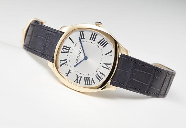 延續2017年Drive de Cartier的超薄款之後,今年新增黃金材質,兩針款的功能算是實用。38x39mm/黃金