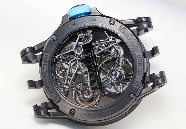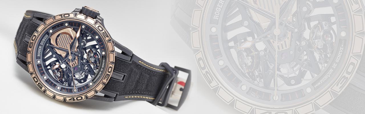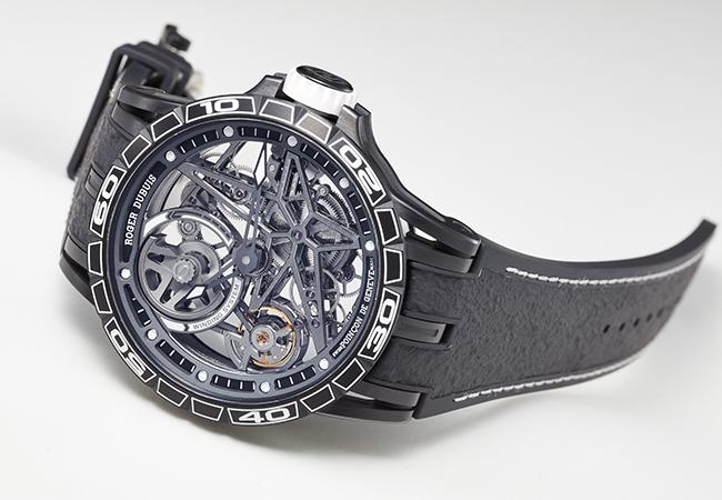 羅杰杜彼今年採用精兵策略,除了與藍寶堅尼賽車部門合作的Excalibur Aventador S之外,另外就是與Pirelli倍耐力輪胎合作的Excalibur Spider Pirelli鏤空腕錶。