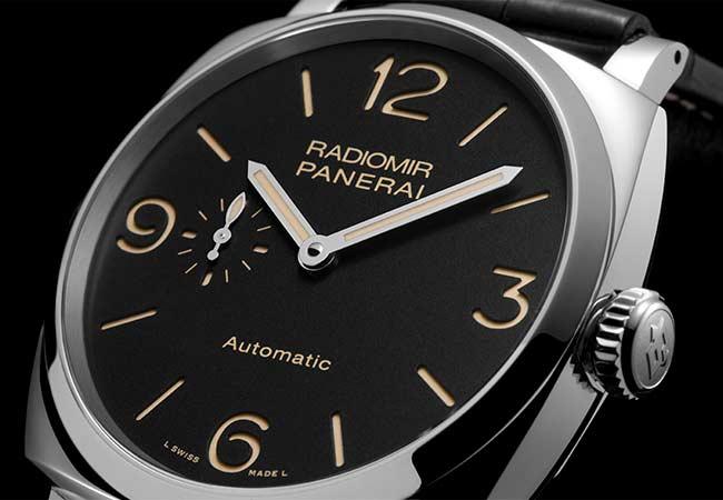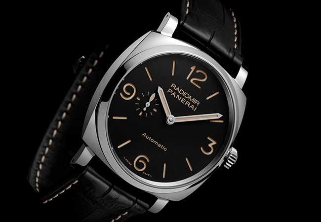 Radiomir 1940 3 Days Automatic 3日動力儲存自動腕錶精鋼款的防水深度為10巴(約100米),紅金款則為5巴(約50米),兩個款式分別搭配黑色或棕色鱷魚皮錶帶。