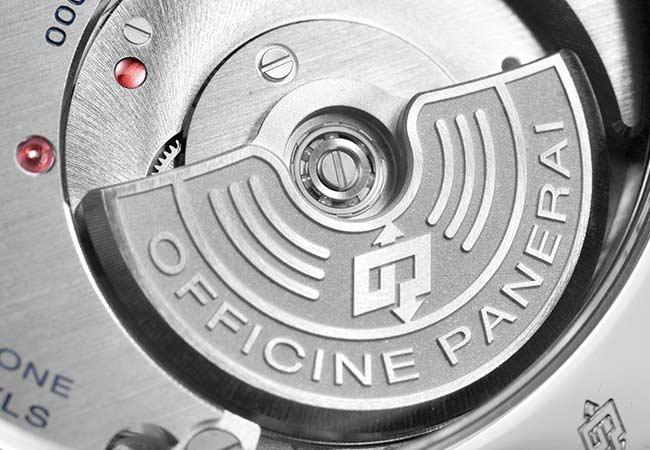 沛納海隆重推出P.4000 機芯,它是品牌旗下第一款配備偏心式擺陀的自動上鍊機芯,並且完全由設於諾沙泰爾的製錶廠自主研發製作。偏心式設計是指擺陀軸心設於偏離中心的位置,因此其直徑小於機芯本身:這項精密的卓越技術大幅度降低了機芯的厚度。這個小型擺陀嵌入機芯內部,而不是疊加在機芯之上。這樣一來,該機芯不但保留了沛納海機芯的精準、可靠和堅固等所有優越特性,更達到僅3.95 毫米的纖薄厚度。
