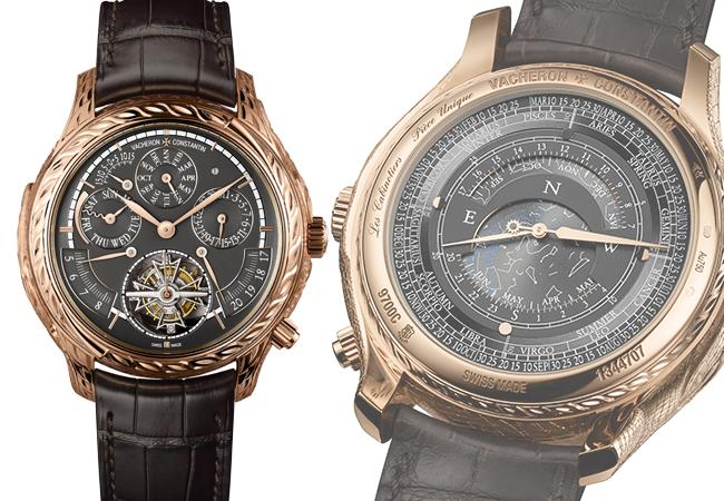 閣樓工匠系列是江詩丹頓超高複雜代表,此款作品發源於2005年推出的高複雜Tour de I’ile。此款錶殼浮雕鱷魚圖騰,並集結包括三問、陀飛輪、萬年曆、日出出落、時間等式、月相、星空圖,季節、星座…等15項功能。功能過多必須雙面顯示。47mm/18K粉紅金/參考價未定