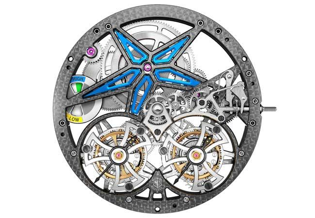 機芯 RD105SQ 雙飛行陀飛輪鏤空機芯,經6方位精確調校