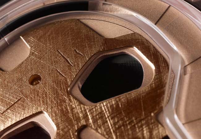 - 玫瑰金(5N)旋入式底蓋,藍寶石水晶玻璃