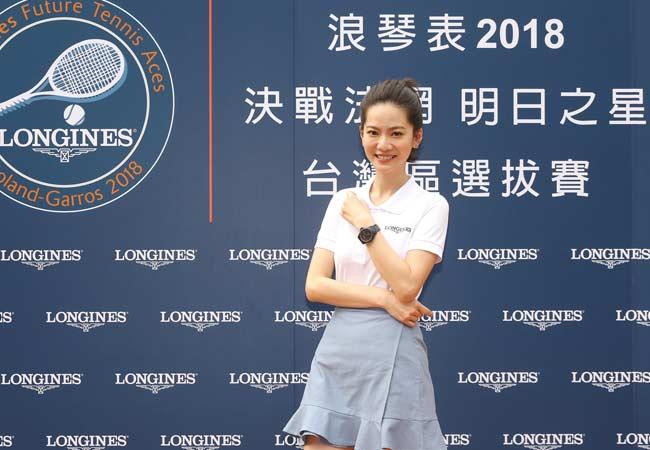 形象清新陽光的活動大使曾之喬,今日出席浪琴表前進法網明日之星選拔賽開賽記者會,特別配戴最新 Longines 浪琴表 Conquest 征服者系列 V.H.P.碳纖維面盤黑色 PVD 鍍層不鏽鋼鍊帶款式,率性展現年輕活力的黑色碳纖維面盤,搭配純黑色鍊帶,翻轉以往溫柔甜美形象,展現耳目一新的酷黑運動風格!天生就擁有絕佳運動細胞的曾之喬現場也小試身手與參與比賽的網球小將們對打熱身,為緊張、刺激的競爭氣氛現場帶來許多的趣味和歡樂。