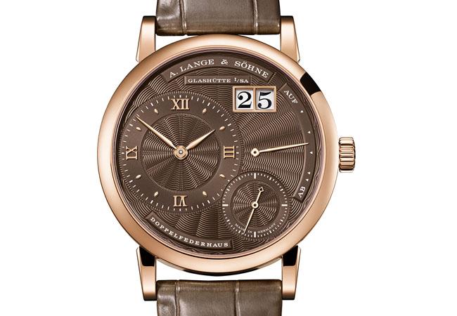 本款腕錶是這次Little Lange 1女錶中,唯一採用玫瑰金的款式,搭配的是棕色面盤與棕色鱷魚皮錶帶。此外,朗格也將原本十點鐘位置的日曆快調按把,改為隱藏式,外型則更為簡潔。36.8mm/18K玫瑰金/參考價EUR 32,500