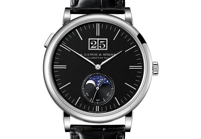 新款的Saxonia大日曆腕錶,錶殼尺寸從先前的37mm增加至38.5mm,但前一代的錶款,具有秒針歸零的設計,本款腕錶則只有停秒功能,而十點鐘位置的按把同樣是快調日曆。38.5mm/18K白金/參考價EUR 24,500