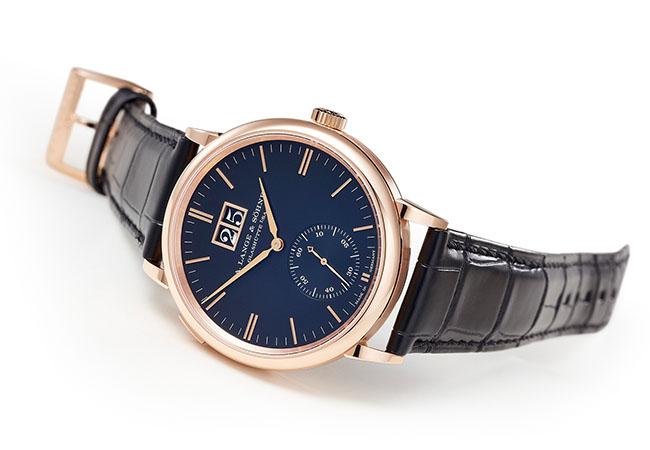朗格在最纖薄的腕錶中(僅6.2mm),增添全新的銅藍色面盤。廠方以實心銀製成面盤,並於表層塗上輕薄的亮麗砂金石,透過氧化銅晶體滲透深藍色調,可呈現出特殊的折射效果。錶款搭載的L093.1手上鍊機芯,厚度僅有2.9mm,具72小時動力儲存。39mm/18K白金/參考價EUR 42,500