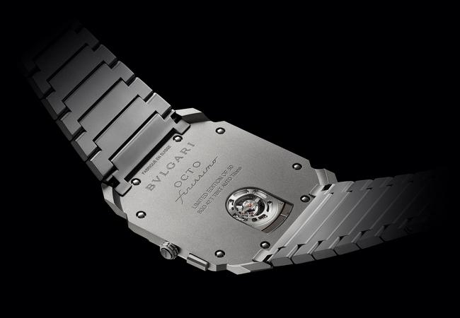 Calibre BVL 288 Finissimo 厚度僅 1.95mm,動力儲存達 52 小時。在噴砂鈦金錶殼的包覆下,坐落著經過透雕細工裝飾的鏤空機芯,讓腕錶的內部世界得以一覽無遺。Octo Finissimo Tourbillon Automatic超薄自動陀飛輪腕錶配備時針、分針,以及小秒針。透視錶背不僅能讓人同時欣賞到陀飛輪與自動盤運作的風貌,其輪廓設計更能讓人聯想起羅馬康多堤大道寶格麗精品店門口裝飾的時尚圖騰。