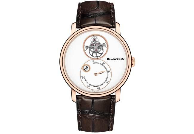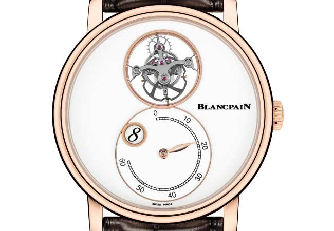 自1989年推出首款配備飛行陀飛輪的腕錶之後,Blancpain在2018年Baselworld,將再次為這個傳奇的高級複雜功能作全新演譯,並在該作品上加入跳時和飛返分鐘兩大複雜功能,成就出Villeret飛行陀飛輪跳時逆跳分鐘腕錶。除了看似懸浮在半空中的陀飛輪結構之外,這款新品還由寶珀工作坊的大師們以人手為機芯及大明火琺瑯錶盤作出細緻修飾。