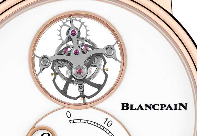 另外,此款腕錶不只是品牌首度結合飛行陀飛輪、逆跳分鐘與跳時之作(跳時也是寶珀首度嘗試的功能),當小時變幻的時刻,跳時視窗與逆跳分鐘同步迅速作動,瞬間的律動,強烈的生命感自然會是賞玩錶款的一大重點。