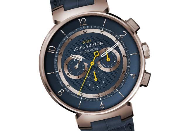 黃色是路易威登傳統的皮件縫線色彩,在這裡則被用來強調額外功能、第二時區、或計時碼錶。
