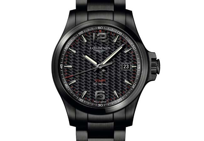 Longines 浪琴表征服者系列V.H.P. 黑色PVD不鏽鋼鍊帶腕錶