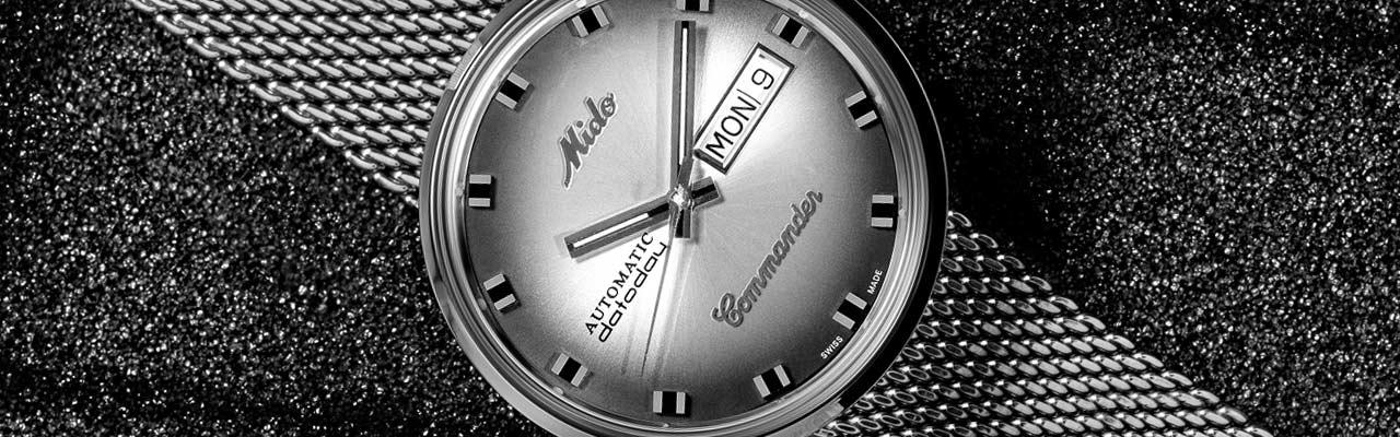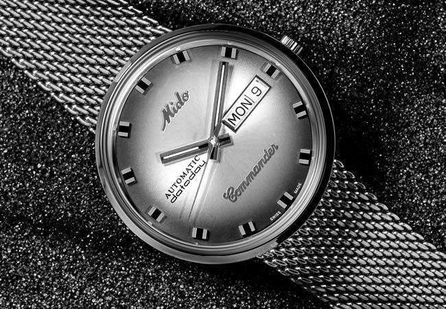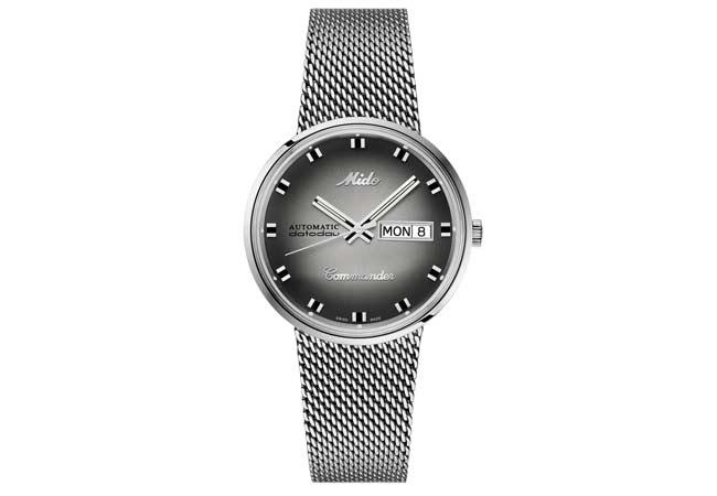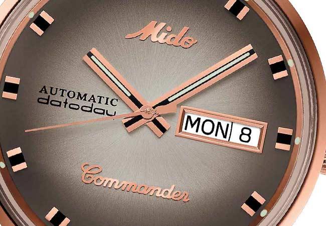 Commander Shade香榭系列光影腕錶特別版以細緻簡約的錶體線條創造開闊視覺感受,壓克力水晶面盤下搭配MIDO美度原創的草寫Logo,完美重現當年香榭系列問世的設計美感。37毫米的錶盤結合1979年的香榭系列的設計重點,渲染漸層的太陽放射飾紋,不鏽鋼款以黑色、玫瑰金款以灰褐色,搭配銀色煙燻漸層處理的雙色錶盤,兩款錶盤展現獨一無二讓人難以抗拒的神祕復古美感。細緻打磨鑲嵌的立體造型時標點綴黑色漆面處理,呼應設計靈感艾菲爾鐵塔的建築結構。鑽石切割處理的時針、分針,以及錶緣12圓點皆使用Super-LumiNova®塗料,確保在黑暗中清晰的閱讀性。3點鐘方位搭載日期、星期顯示窗,將細節處理臻至完美。