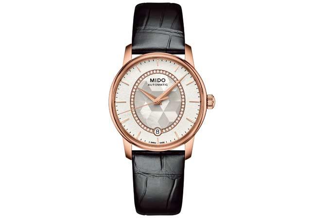 錶盤使用雙面防眩藍寶石水晶玻璃鏡面,為錶盤帶來極佳的閱讀性,時針與分針為雙面材質,一面為噴砂拋光,另一面則為鑽石切割,秒針則以絕美細緻的鑽石切割處理,展現對細節要求的絕對堅持;錶殼後底蓋可透視機芯,一窺細緻打磨的Caliber 80自動上鏈機芯以及日內瓦飾紋的自動盤,防水更可達50米。MIDO美度表重新解構輕奢珠寶錶,Baroncelli Prisma永恆系列80小時晶燦鑲鑽女錶透過噴砂面盤、珍珠母貝、鑽石、拋光打磨的精鋼等材質變化、細節堆砌展現美度表的設計力,為了呈現稜鏡光線折射之美,細緻挑選切割的珍珠母貝、鑽石鑲嵌,只有依靠一系列手工技藝,方能實現最佳美學效果,PVD玫瑰金錶殼搭配黑色鱷魚壓紋真皮錶帶讓永恆系列80小時晶燦鑲鑽女錶被視為寵愛媽咪的最佳獻禮。