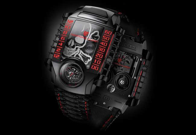 X-TREM-1 – StingHD搭載兩套由StingHD特別設計的錶帶,分別為黑色魟魚皮革,另一款則可由擁有人按喜好自訂。隨錶更可獲得搭配的手工製作黑鑽紅寶石眼骷髏手鐲。以優雅方式提醒佩戴者時間匆匆不留人,務必活在當下。刹那之間抑或無窮無盡往往只是數小時之別,如何取捨的設計巧思,全世界僅8位藏家可擁有,建議售價NT$9,900,000。