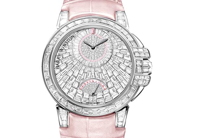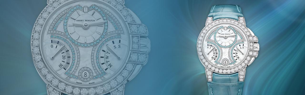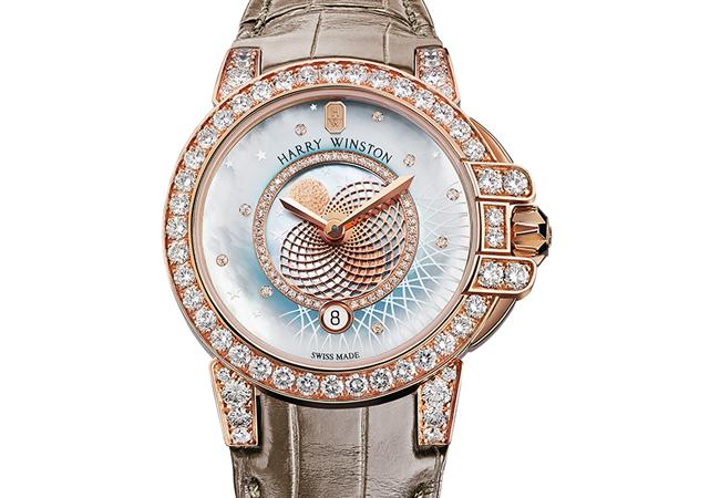 2018年慶祝問世20周年紀念、以運動錶為定位的Ocean系列,錶徑自然是大尺寸的設計。不過到了2006年,Ocean系列首度推出女錶的時候,錶徑也做了調整,不像男錶有著42mm、44mm的大錶徑,而是將尺寸降至36mm,和旗下的當家女錶系列Premier是一樣的大小。除了在尺寸上面的考量之外,HARRY WINSTON也將雙逆跳這項罕見於女錶的複雜功能,用在Ocean系列上,結合鑽石的鑲嵌凸顯Ocean系列女錶的獨特之處。而像是被歸在浪漫小複雜功能的女錶,HARRY WINSTON在Ocean系列也有著很詩意的詮釋。