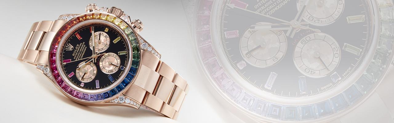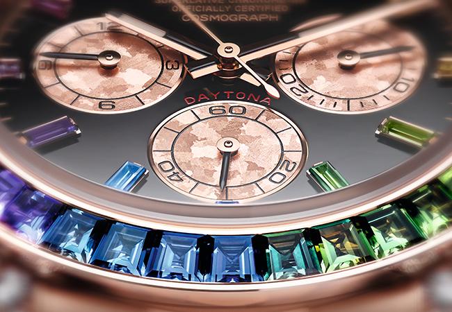 將漸變色寶石鑲嵌技術運用至爐火純青的勞力士,今年再次將此一技術運用在Daytona錶款之上。而過去Pearlmaster 39所使用的漸變色寶石只有三種主色,但是Daytona則是運用如同彩虹般的七種顏色,製作難度更是提高許多。