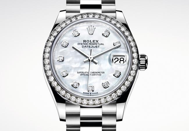 雖然錶款的外觀仍保留Datejust系列的風格,不過全新的元首型錶帶,其隱蔽式耳蓋確保錶帶和錶殼之間達到無縫連接的視覺效果;錶帶內嵌有陶瓷組件,使錶帶更爲靈活堅固。白色珍珠母貝面盤上的時標刻度也鑲有鑽石。31mm/18ct白金/參考價請電洽。