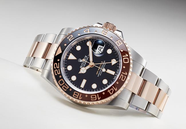 在2018年,勞力士除了推出新款的不鏽鋼紅藍陶瓷圈GMT-Master II之外,使用永恆玫瑰金材質打造的本只腕錶,更是首次出現於GMT-Master II系列中。錶款採用特殊的棕黑雙色陶瓷錶圈,同時搭載全新的3285自動機芯。40mm/18ct永恆玫瑰金/參考價請電洽。
