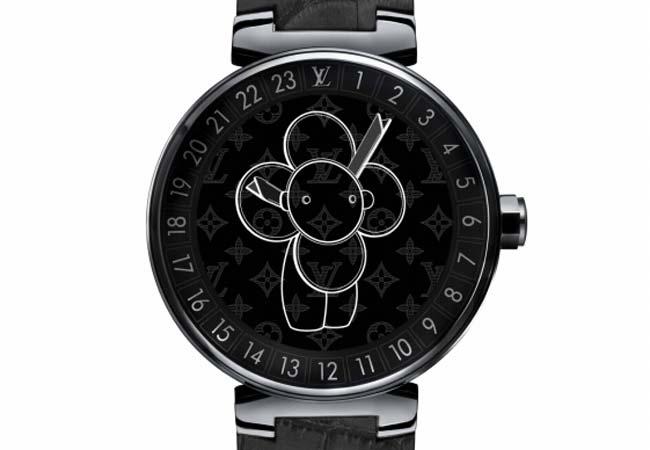 Tambour Horizon腕錶的“My 24 Hours”錶面飾以路易威登旗幟,代表品牌的旅遊精神,除了時分針和錶面中央的日期和星期顯示外,還能選擇四種不同背景:黑色搭配多彩的經典版、黑藍的郵輪版,黑綠的探險版,還有白色配粉紅的夢想版。搭配白色錶帶更凸顯女性柔美特質。My 24 Hours還有三種不可或缺的功能:日期、天氣、和計步器。