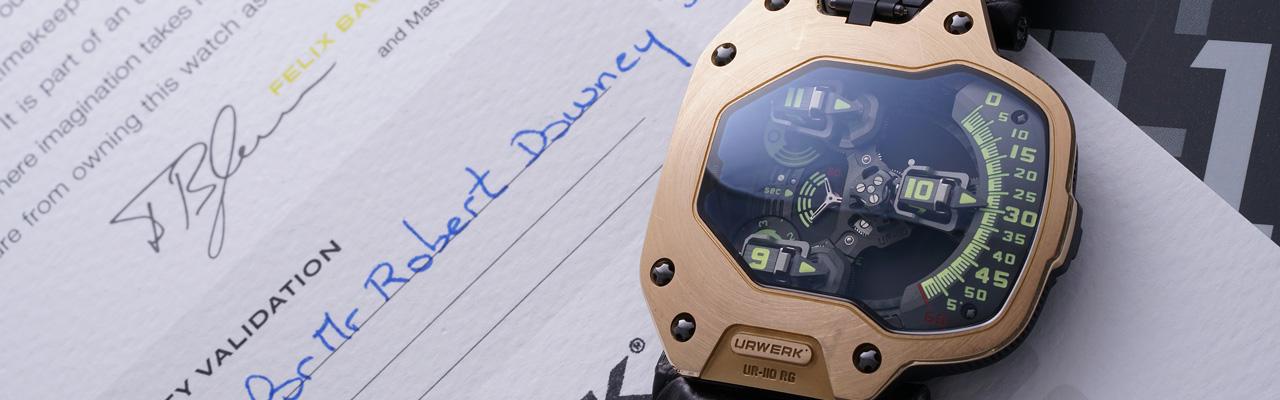 就在2017年,全球影迷目睹了一支特殊且稀有的手錶於螢幕上的首次亮相。這支小勞勃.道尼於電影《蜘蛛人: 返校日(Spiderman: Homecoming)》中所配戴的Urwerk UR-110RG不僅僅是他本人的收藏,更是角色東尼‧史塔克鋼鐵人5在劇中所使用的道具之一。本身是Urwerk擁護者的小勞勃.道尼視UR-110RG為天才億萬富豪及超級英雄的絕佳配件,然而非常戲劇性地此腕錶差一點便無法在這部電影中登台亮相。