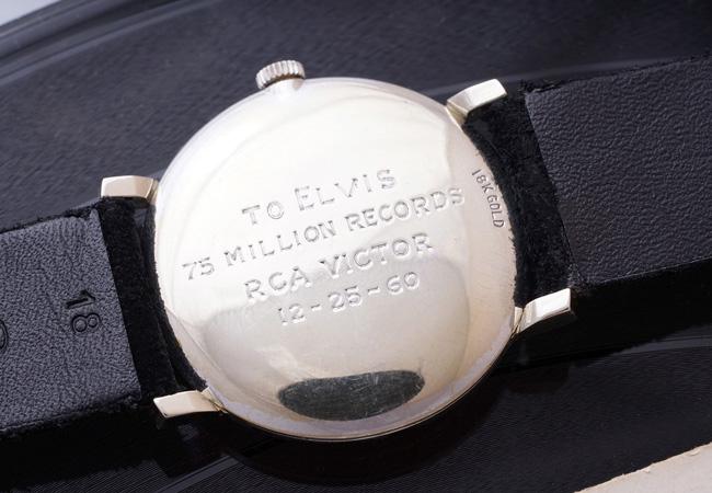 這一只18K白金腕錶被形容為「迄今為止,市場上最具歷史意義的貓王腕錶」。此錶由是RCA唱片於1961年2月,在慶祝貓王唱片全球銷售七千五百萬張的慈善午宴暨演唱會上獻給貓王。