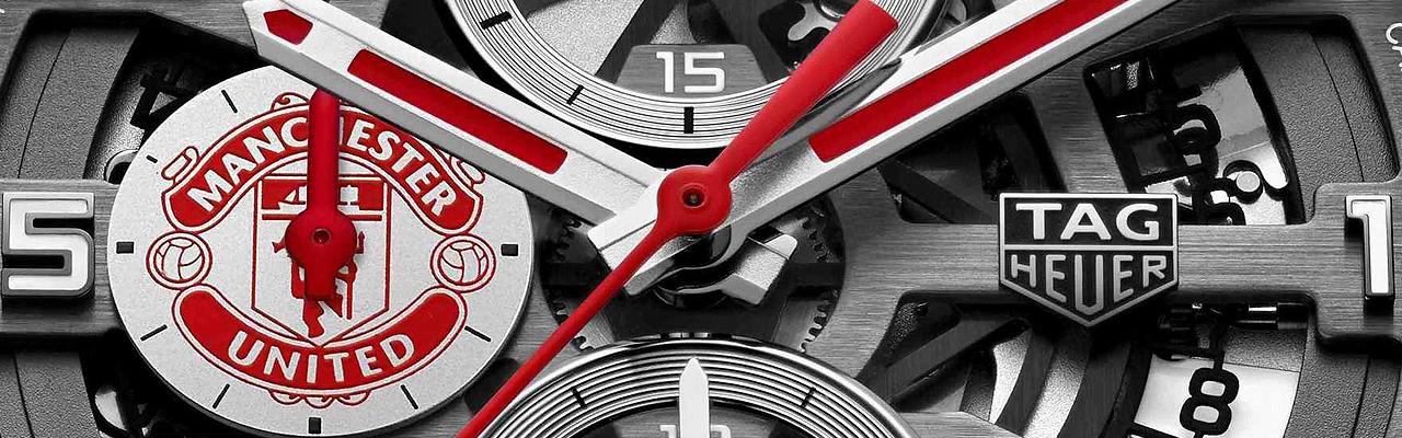TAG Heuer在去年推出首款 Carrera Heuer 01曼聯特別版計時碼錶,採用45毫米黑色PVD精鋼錶殼,被譽為「紅魔鬼」曼聯的鮮紅色彩,在這枚迷人腕錶耀眼現身,包括9時位置的俱樂部標誌、錶圈12時位置的TAG Heuer盾牌、時針、分針和中央計時秒針,並備有黑色與紅色鱷魚皮錶可供選擇,建議售價NT$ 212,000。2018全新版本的TAG Heuer Carrera Heuer 01曼聯特別版計時碼錶則改用43毫米精鋼錶殼,曼聯紅色被運用於時、分、中央計時秒針,以及錶面外緣的計秒環,搭配9點鐘方向的曼聯隊徽與紅色橡膠錶帶,建議售價NT$ 186,800。