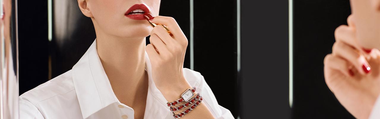 Première系列旗下其實分為不少支線,例如以金屬鍊節為錶鍊設計的Première Chaîne、用高科技精密陶瓷或橡膠作為錶帶的Première Mini、將鑽石或寶石鑲嵌於錶殼或鍊帶上的珠寶錶;另有結合配件與時計概念的Première Rock腕錶,其將CHANEL菱格紋包皮革穿鍊揹帶的設計,延伸至錶款鍊帶,強化了手錶的搭配性,彷彿是具有時計功能的手鍊。
