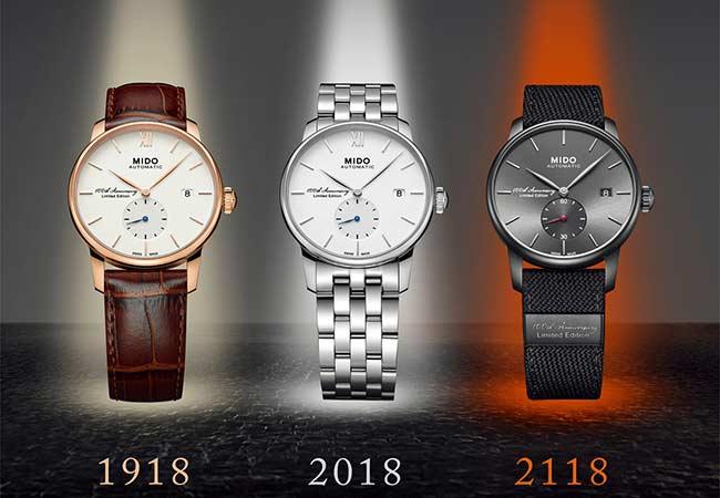 創立於1918年的Mido 瑞士美度表於台北盛大舉辦「築.跡 百年時間展」上市活動,歡慶品牌迎向100週年,以「過去、現在、未來」為主題概念,展出多款別具歷史意義的古董腕錶,以及2018全新經典系列錶款。回顧歷史之餘,也藉由100週年慶典的契機展望未來,擘畫未來的藍圖,透過不同時代的腕錶設計,窺見每個時代的生活風貌。Mido 瑞士美度表全球總裁Franz Linder特地來台共相盛舉,與Swatch Group斯沃琪集團台灣分公司總經理李佩倩、Mido 瑞士美度表台灣品牌副總藍楷茗以及國民男神鄭元暢,一同歡慶美度表燦爛的百年時光。推出全新多款Baroncelli Big Date永恆系列大日期窗腕錶,配備獨有大日曆視窗功能結合Caliber 80超長動力儲存,專為瑞士美度表100週年誕辰而生,紀念瑞士美度表這百年一遇,繼往開來的「大日子 Big Date」;以及Baroncelli Trilogy永恆系列三部曲限量錶,精準呈現1918年和2018年的設計意象,及對未來2118年的展望與期許。