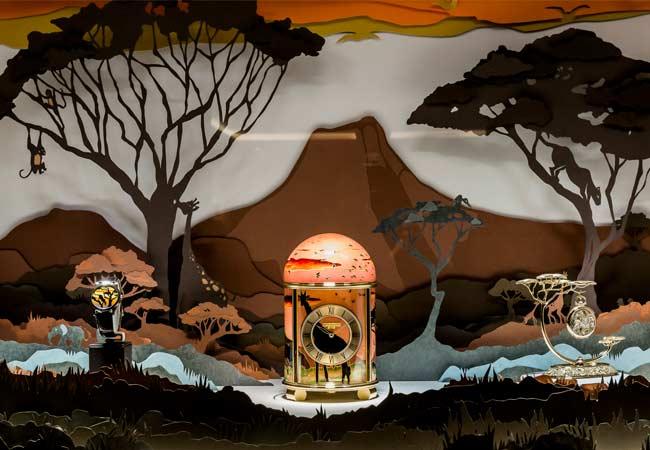 其中金屬雕刻(Engraving)是最古老的腕錶裝飾藝術形式,也是過去懷錶時代最常使用的工藝;大明火琺瑯(Grand Feu)則結合了多種不同的技術:像是掐絲琺瑯(Cloisonné)、金箔雕花琺瑯(Paillonné)、與難度最高的微繪琺瑯。另外,這次百達翡麗也展出多款細木鑲嵌作品,這是百達翡麗這幾年來一直在推廣的工藝;透過鑲嵌大師精湛的技巧,打造令人驚嘆的作品。