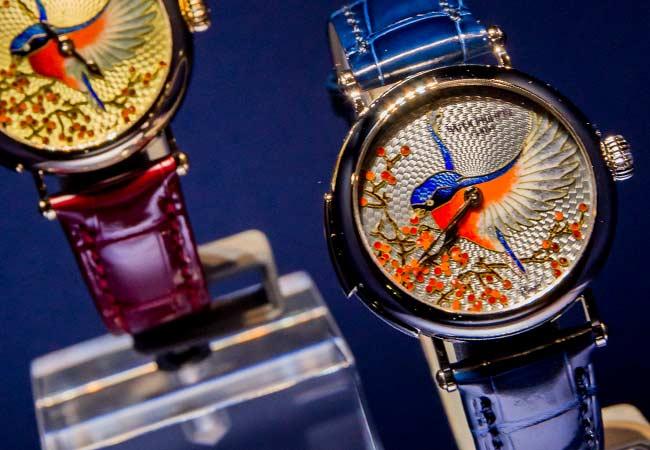 隨著機刻雕花大師熟練的技巧,搭配不同規格的機台,可變化出更豐富的飾紋,包括巴黎釘紋、古典籃織紋、火燄飾紋、麥穗飾紋⋯等等超過20種的雕花飾紋。此次展覽中,雖然沒有展出單一的機刻雕花面盤錶款,但是結合掐絲琺瑯與機刻雕花的《黃金鳥》7000/50R-001三問錶款,具備細膩的面盤飾紋,也能展現出機刻雕花的魅力。