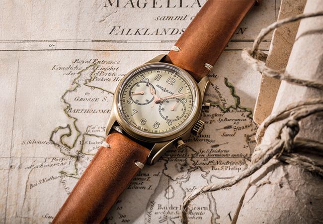 萬寶龍在近幾年的戰略十分明確,以自身的品牌高知名度,用合理的價格挑戰其他品牌,1858系列的計時碼錶,用上了時下最熱門的青銅材質,同時搭配香檳金色面盤,整體有著強烈的復古美學,再加上質感極好、皮感滑順細膩的、具縫線的棕色小牛皮錶帶,才NTD 162,000,實在非常划算。