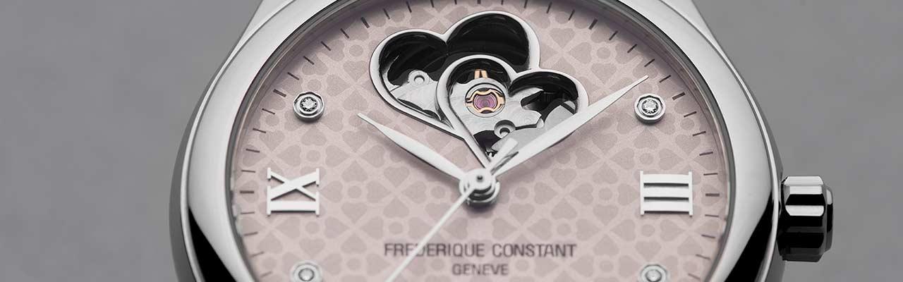 全新腕錶備有拋光不鏽鋼或玫瑰包金款式,錶殼尺寸為36毫米,底蓋鏤空。其中兩款腕錶搭載FC-303自動上鏈機芯,具時、分顯示,3時位置設日期顯示。另外四款腕錶搭載FC-310自動上鏈機芯,12時位置設Heart Beat視窗,具時、分顯示。兩款機芯皆為瑞士製造,共有26顆寶石軸承,每小時振動28,000次,動力儲存達38小時,防水深度為50米。時尚的鱷魚皮錶帶富現代感,與亮灰色、淺藍色、海軍藍色、酒紅色錶盤十分相襯。