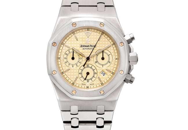 奶油色面盤頗有復古味,不論是在勞力士探二上或是這款皇家橡樹,都能讓人眼睛一亮。20萬港元的成交價雖未達估價高點,但同場有款玫瑰金的皇家橡樹離岸型也以相同價格成交,相較之下表現很好了。