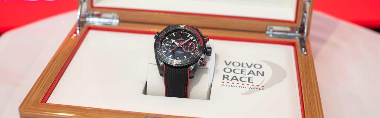 歐米茄的冠軍錶能反映出參賽者面臨的艱難航行環境:準確堅固。海馬系列Planet Ocean Deep Black「Volvo Ocean Race環球帆船賽」限量版45.50 毫米腕錶,是一款搭配黑色橡膠錶帶的潛水錶,其錶殼和錶盤皆以黑色陶瓷精製而成,且在3點鐘位置的子錶盤上設計了一個紅色的Volvo Ocean Race環球帆船賽環圈,並搭配彩色指針及時標數字12。在定向的錶背上,則可發現本活動的另一項參照標記,即歐米茄的「Volvo Ocean Race環球帆船賽」官方標幟。