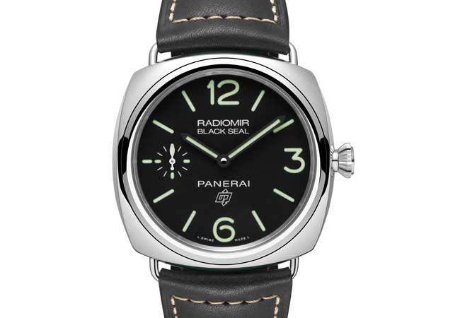 兩款全新Radiomir型號的枕型拋光精鋼錶殼及纖薄錶耳,呼應沛納海為義大利皇家海軍突擊隊研製的第一批腕錶,腕錶背面亦延續以精鋼鑄造的傳統。圓形黑色錶盤和字體圓潤的沛納海數字相得益彰。每個數字均略作鐫刻加工,令表面的夜光物料更鞏固,確保置身黑夜仍可清晰讀時。6點鐘位置飾以OP商標,雙箭頭分別指向天空和深海,代表沛納海製作的精密儀器和腕錶,協助義大利海軍執行天空和海底任務;Radiomir Black Seal Logo更於9點鐘位置設小秒盤。