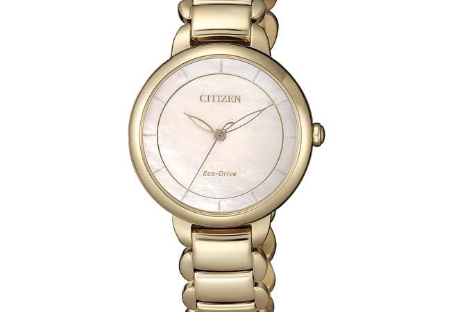 在2018年最新一季的女錶中,以環環相扣的金屬錶帶設計,寓意萬物生生不息的意涵,分別在錶殼與錶帶間呈現EM0673-83D玫瑰金、EM0674-81A香檳色半金、EM0676-85X銀白金屬三種不同色澤設計,截然不同的氣質與內涵油然而生。三針設計與乾淨錶盤設計,金屬圓弧加上代表12個整點的簡約線條,意外洋溢古典寧靜的視覺美感。而EM0673-83D錶面更以白蝶貝材質,如珍珠般的溫暖色澤,做為輕奢華風格的最佳寫照。除光動能技術外,更以球面藍寶石玻璃鏡面,5氣壓防水功能,表現CITIZEN計時工藝的堅實與底蘊。
