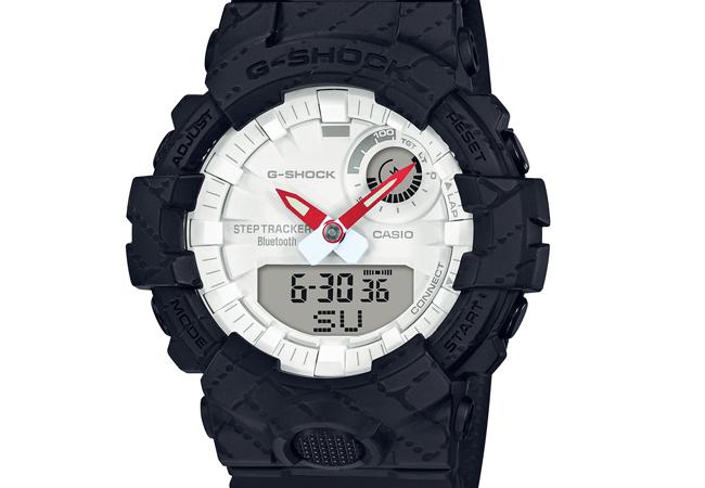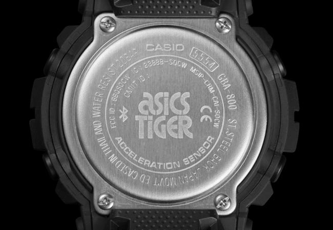 而G-SHOCK則以搭載BLUETOOTH®藍牙連線功能的GBA-800為基礎型號,整合每日步數及所消耗的卡路里……等日常健康管理為主推功能,黑色錶身搭配白色錶盤,完整呼應ASICSTIGER鞋款色系,錶盤上的紅色指針設計,讓時間清晰易讀,而錶帶及錶殼利用雷射加工,創造出猶如鞋款的編織紋路,整體呈現出ASICSTIGER的高科技形象,為紀念首度合作,錶帶及背刻有ASICSTIGER品牌LOGO,而特殊外包裝為縮小鞋盒的設計,非常值得收藏。