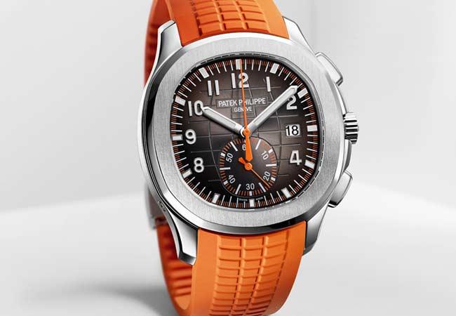 百達翡麗Aquanaut系列首枚計時碼錶。採用CH 28-520 C自動上弦機芯,具備自動回位計時裝置。橘色設計的計時秒顯示,與黑色凸紋錶面相互映襯,效果出眾。新款腕錶採用革新摺疊扣,具備四個獨立扣鉤,令開合效果更佳。腕錶除原本黑色錶帶外,另附贈橙色錶帶。