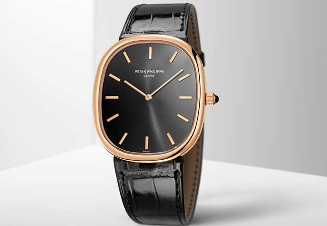 百達翡麗Gold Ellipse腕錶以玫瑰金大裝款式,誌慶Gold Ellipse系列面世五十周年。橢圓形錶殼輪廓俐落,玫瑰金暖和光華,搭配黑檀木色放射狀錶面,展現非主流時計風采。錶冠鑲有一顆黑色縞瑪瑙,圓滿時計諧和格調。腕錶由240機芯驅動,厚僅5.9毫米,纖薄雅致。