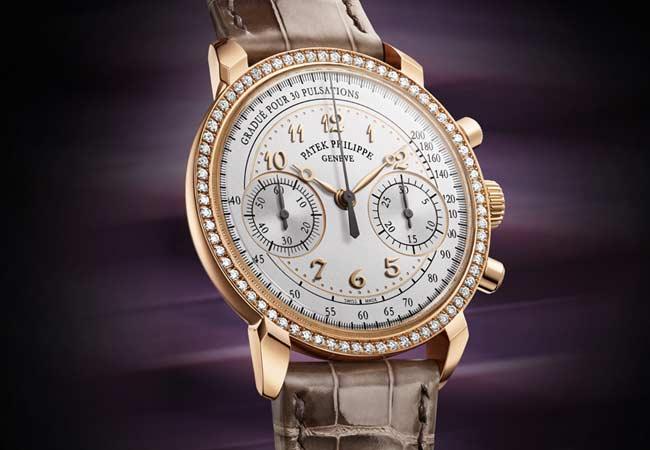 百達翡麗 Calatrava女裝計時碼錶,線上款式唯一女性計時碼錶。錶殼內藏CH 29-535 PS機芯,融合六項專利革新設計,在盒狀寶石玻璃底蓋下一覽無遺。圓形計時秒按鈕表面由人手添上交錯飾紋,銀調乳白色錶面集當代與古典美感於一身,腕錶備有脈搏計刻度,誠向昔日經典計時碼錶致意。