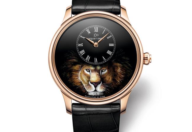 雅克德羅採用微繪工藝刻劃雄獅獨特神韻。工匠大師於黑色大明火琺瑯錶盤上進行微繪創作,賦予圖案深邃之感,同時呈現對比鮮明的色彩和風格,簡約時尚的黑色琺瑯錶盤與雅克德羅工匠大師創作的彩色手工微繪圖案相映成趣,而唯有精緻細膩的微繪技法,才能逼真的將雄獅神態細節完整呈現於直徑43毫米的錶殼內,而雄獅眼神與皮毛細膩線條,藉由工匠大師一筆一畫親手精心繪製。工匠大師使用多種畫筆,其中一些的筆尖僅只為了刻劃一根毫毛,细如髮絲。工匠大師繪畫出用肉眼無法察覺的精微細微,而造就活力盎然、栩栩如生的畫作。28只腕錶均為工匠大師手工制作,每只腕錶均附藝術工坊證書,由親手制作28只腕錶的工藝大師署名,藉此於腕錶擁有者與品牌之間建立難能可貴的親密關聯。