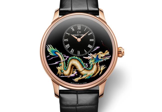 雅克德羅精緻細膩的微繪傑作承襲自啟蒙時代的藝術傳統,融合中國傳統神獸,締造出非凡之腕錶─微繪龍時分小針盤腕錶(PETITE HEURE MINUTE DRAGON)。龍是呼風喚雨、權力的象徵,在中國傳統神話中,龍在天則騰雲駕霧、下海則追波逐浪、在人間則呼風喚雨無比神通,過去也是皇權的代名詞。雅克德羅是瑞士高級鐘錶業的設計先鋒,早在18世纪清朝乾隆時期就與中國結下不解之緣。他對中國文化的熱愛,也可以從他的作品窺知一二。傳承皮埃爾·雅克德羅的製錶理念,將中國傳統民間故事與工匠大師的精湛技藝完美結合,創造出獨具一格的腕錶,同時書寫雅克德羅全新歷史篇章。